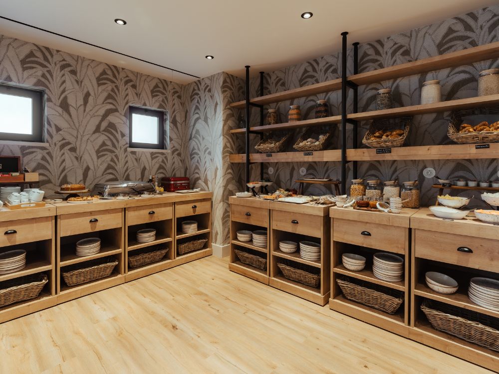 On-property, you’ve got multiple options depending on the season and your mood. There’s a rooftop bar and restaurant in summer, made for sunset drinks and tapas with views over the rice fields (and weekend DJ sets).